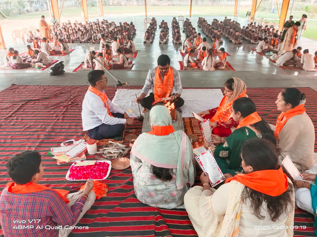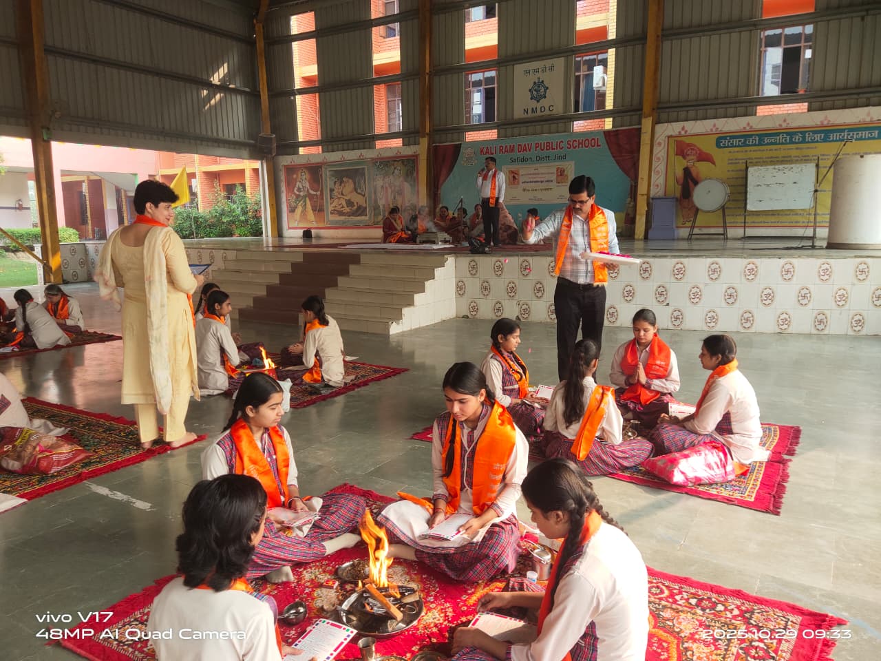 कलीराम डीएवी पब्लिक स्कूल में 29 अक्टूबर, बुधवार को वैदिक संस्कार पुण्य मास के समापन पर 11 कुंडीय हवन यज्ञ किया गया। अनेक वैदिक गतिविधियों के माध्यम से 2 अक्टूबर से 29 अक्टूबर तक विद्यालय प्रांगण में वैदिक संस्कार पुण्य मास मनाया गया। कक्षा छठी से दसवीं तक के बच्चों ने 11 कुंडीय हवन यज्ञ में बढ़- चढ़कर भाग लिया। बच्चों ने वैदिक मंत्रों का उच्चारण करते हुए यज्ञ संपन्न किया। हवन की सुगंध से महकता हुआ विद्यालय प्रांगण वैदिक मंत्रों की ध्वनि से गूंज रहा था। अंत में शांति पाठ के बाद पुष्प वर्षा करते हुए प्राचार्य श्री पंकज कुमार सिंह ने बच्चों को आशीर्वाद दिया और अपने संबोधन में कहा कि हवन-यज्ञ के माध्यम से वैदिक संस्कारों को घर-घर पहुंचाना ही डीएवी का मुख्य उद्देश्य है ।यज्ञ एक वैज्ञानिक पद्धति है जिसके द्वारा पर्यावरण में उत्पन्न होने वाले सूक्ष्म रोगाणुओं को समाप्त किया जा सकता है। यज्ञ एक श्रेष्ठ कर्म है। श्रेष्ठ कर्म, श्रेष्ठ विचार तथा अच्छी संगति बच्चों को एक आदर्श विद्यार्थी बनाती है। इस प्रकार की गतिविधियों से ही बच्चे अपनी सभ्यता, संस्कृति, देश, धर्म व समाज सेवा के लिए समर्पित होते हैं।भौतिकतावादी युग में बच्चे पाश्चात्य संस्कृति की ओर आकर्षित हो रहे हैं। ऐसे समय में बच्चों को अपनी वैदिक संस्कृति व संस्कारों से परिचित करवाने में वैदिक गतिविधियों की अत्यंत आवश्यकता है। इनसे बच्चों में संस्कार, चरित्र व नैतिकता के गुणों का समावेश होता है।